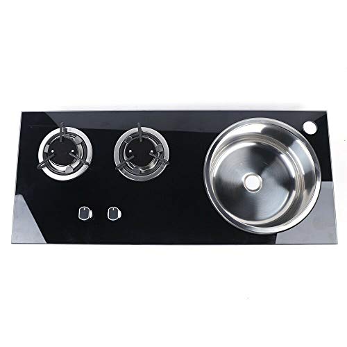 • 【Specification】2 gas burner with Sink Combo Faucet can be installed, but it needs to be purchased separately Overall Size: 790x340x130mm Bowl Size: Ñ„260x130mm, Ñ„10.2x5.9 inch 8mm thick tempered glass Black glass color